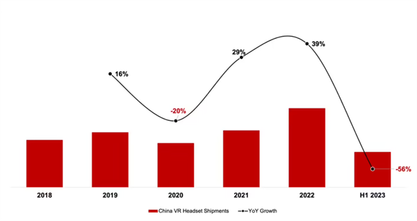 - 10 月 12 日消息,根據市場調查機構 Counterpoint Research 公布的最新統計報告,2023 年上半年我國 VR 頭顯設備出貨量大幅下降 56%,結束了 2021-2022 年的連續兩年增