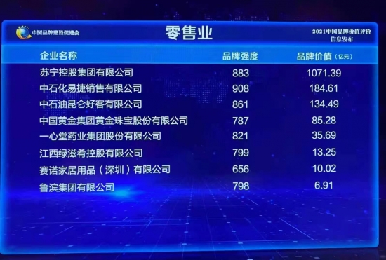 - 2021中國品牌價值發布 蘇寧集團1071億位列零售業第一