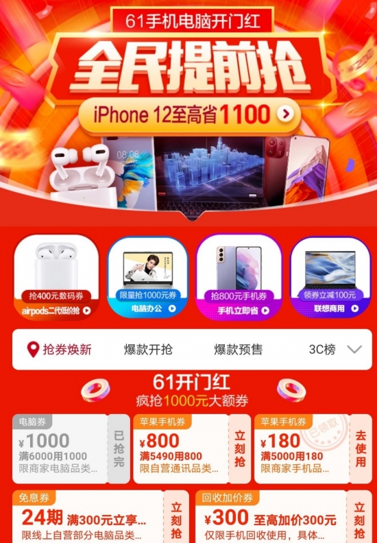 - 5月24日,蘇寧3C正式啟動618換新省錢風暴,六一寶寶節將打響第一槍。大牌新品集中首發、1000元大額神券限量搶購、爆款產品至高24期免息、爆款手機電腦數碼9.9元