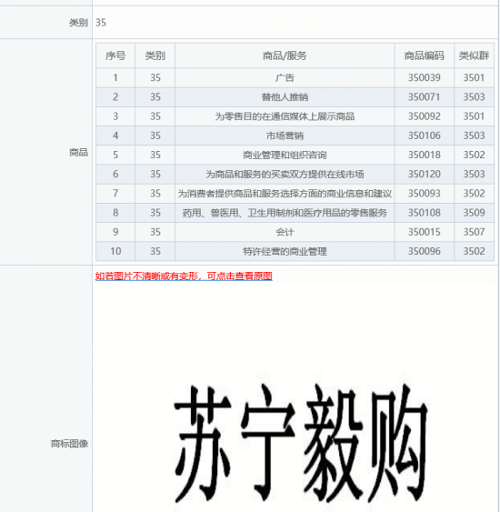 - 日前有消息稱,蘇寧易購(gòu)集團(tuán)有限公司已經(jīng)提交了“蘇寧毅購(gòu)”的商標(biāo)申請(qǐng),該商標(biāo)隸屬第35類,廣告銷售類。 蘇寧毅購(gòu),出自郭麒麟和宋軼主演的商戰(zhàn)題材古