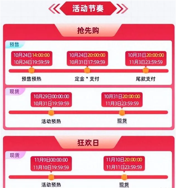 - 淘寶天貓、蘇寧易購日前已公布雙11節奏及玩法