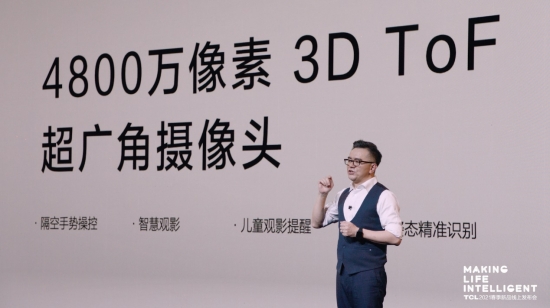 TCL X12 8K Mini LED 星曜智屏還是一款智慧屏產品,它配置了一款 4800 萬像素的行業第一款 3D ToF 攝像頭,可以更精準地識別隔空手勢,支持用戶播放、暫停的手勢動作,也可以精準識別人的觀影姿態和距離。