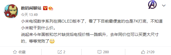 漲價大潮來襲,消息稱小米電視數(shù)字系列將推出 OLED 新品