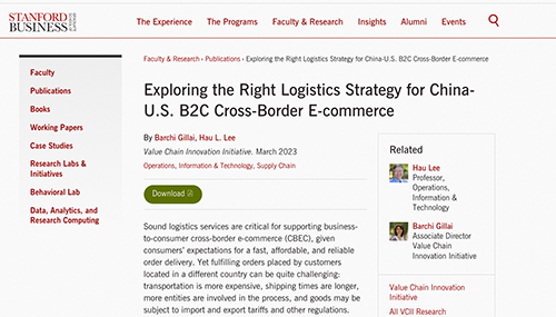 - 近日,斯坦福大學商學院供應鏈創新中心發布《跨境電商物流策略白皮書》(以下簡稱“白皮書”),圍繞跨境電商物流模式比較、流程梳理和跨境物流發展趨勢等,為中國和海外跨境電商從