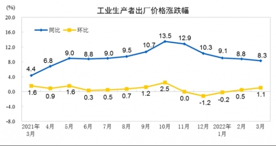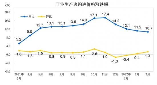 2022年3月份CPI同比漲幅擴大 PPI同比漲幅繼續回落