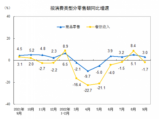 統計局:2022年9月份社會消費品零售總額增長2.5%