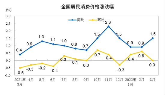 - 國家統計局昨天發布了2022年3月份全國CPI(居民消費價格指數)和PPI(工業生產者出廠價格指數)數據。對此,國家統計局城市司高級統計師董莉娟進行了解讀。 一、CPI環比持平,同比漲幅有所