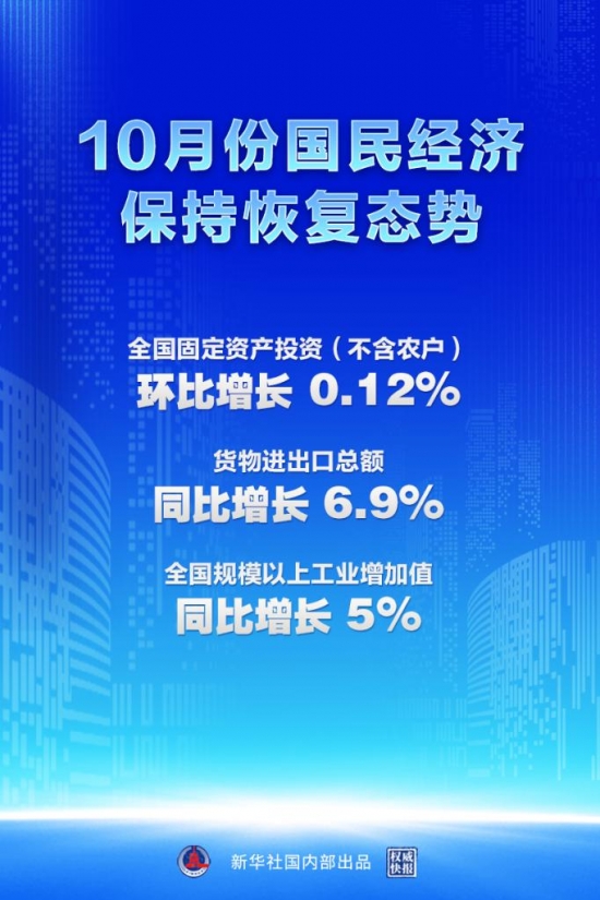 - 國家統計局:10月份國民經濟保持恢復態勢