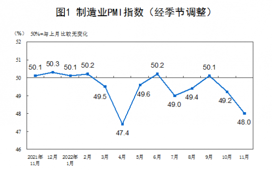 - 國家統計局:11月制造業PMI降至48.0%,連續兩個月低于臨界點