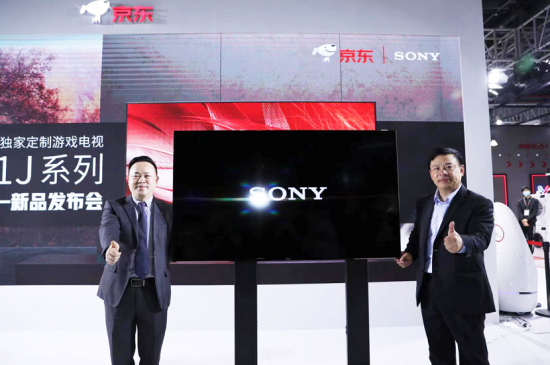 京東集團副總裁、家電事業部總裁謝帆和索尼(中國)有限公司消費電子營業本部副總裁洪鋼共同發布索尼游戲電視新品X91J