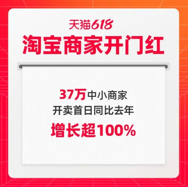 - 618淘寶商家增速亮眼:37萬小商家開賣首日成交增長超100%