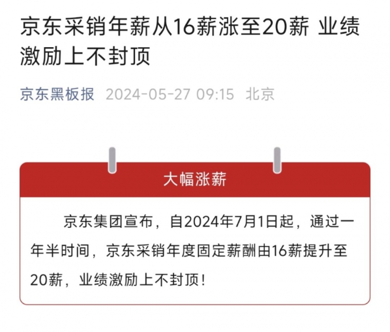 - 再次漲薪!京東宣布京東采銷年薪從16薪漲至20薪