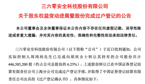 - 周鴻祎與前妻離婚股份過戶完成,最新市值68億元