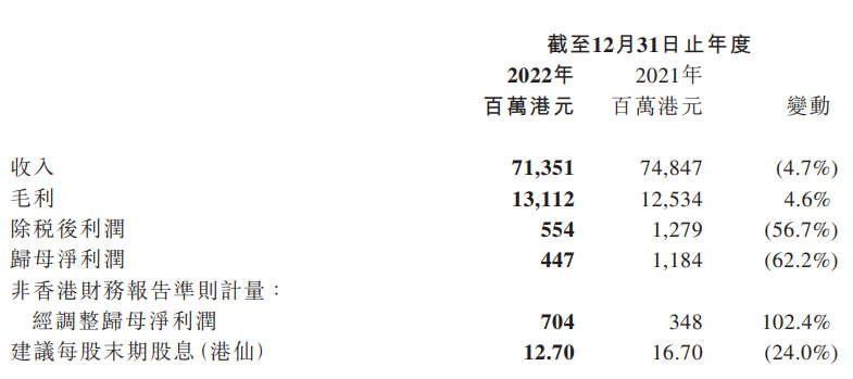 - 近日消息,TCL 電子公布了截至 2022 年 12 月 31 日止年度業績公告,營收為 713.51 億港元(當前約 632.17 億元人民幣),同比下跌 4.7%;經調整歸母凈利潤 7.04 億港元(當前約 6.24 億元人民幣