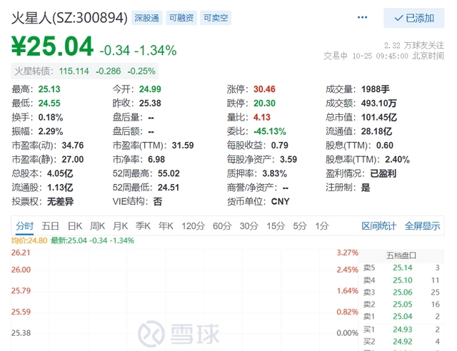 - 火星人股價跌1.3%,第三季度凈利潤同比降19.9%
