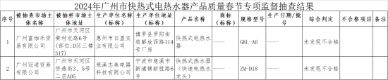- 2024年廣州市快熱式電熱水器產(chǎn)品質(zhì)量春節(jié)專項監(jiān)督抽查結(jié)果