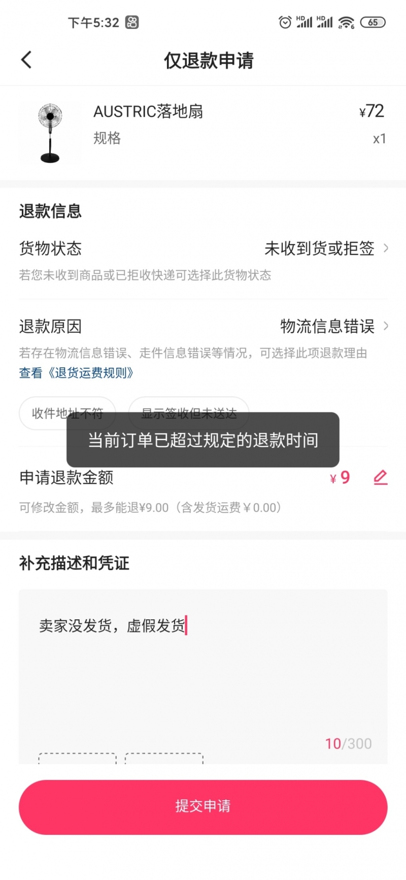 - 投訴時間:2023-03-02 19:00:59 投訴主題:某平臺商家虛假發貨不退款 產品名稱:電風扇 企業名稱:北京快手科技有限公司 企業地址:未提供 投訴內容:某平臺買的東西,商家虛假發貨,平