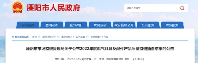 - 江蘇省溧陽市公布2022年度燃氣灶具及配件產品質量監督抽查結果