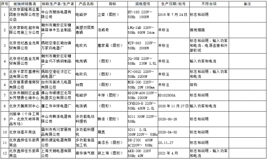 - 近日,北京市市場監督管理局網站公布了《北京市家用電器產品質量監督抽查結果公示》。北京市市場監督管理局近期依法對北京市生產、銷售的家用電器開展了質量監督抽查。按照相應產品質量