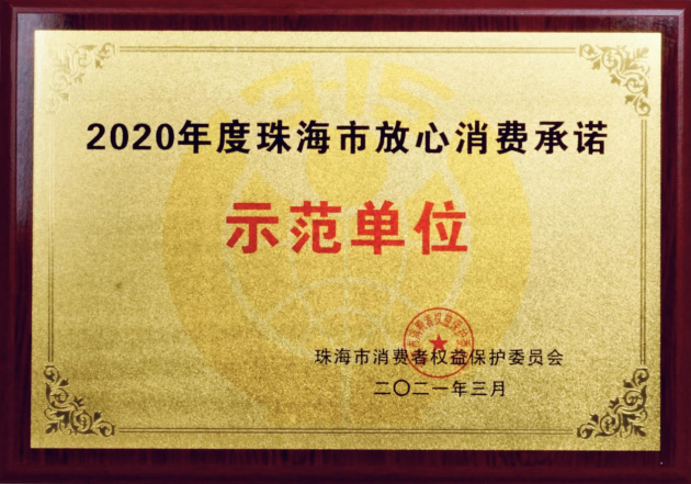 雙喜電器榮獲“2020年度珠海市放心消費承諾示范單位”