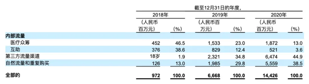 2018年,通過眾籌和互助引流實現的保費占比高達85%。 隨著業務擴張,產品外部流量占比不斷攀升,另外兩款產品的流量貢獻度大幅度下降。到了2020年,眾籌和互助引流實現的保費占比僅為17%。