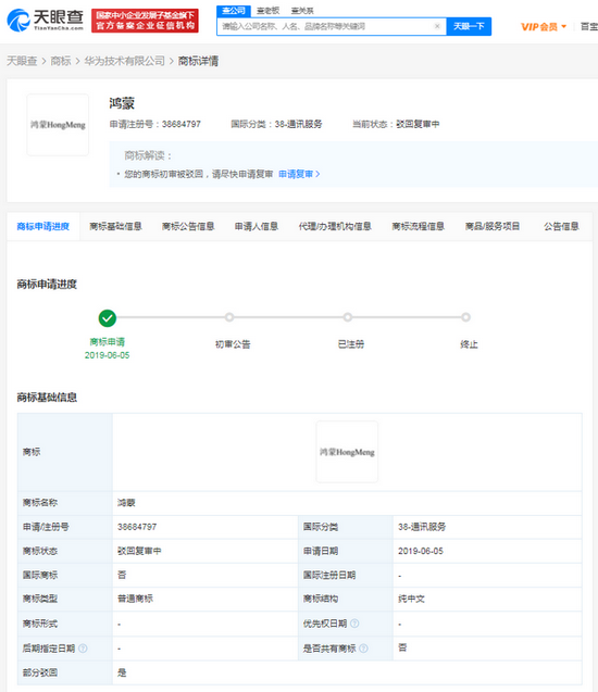 華為訴爭(zhēng)鴻蒙HongMeng商標(biāo)一審被駁回