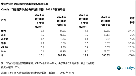 免責聲明: 家電資訊網(wǎng)站對《2022年第三季度,中國大陸可穿戴腕帶市場連續(xù)六個季度的下滑》一文中所陳述、觀點判斷保持中立,不對所包含內(nèi)容的準確性、可靠性或完整性提供任何明示或暗示的保證。請讀者僅作參考,并請自行承擔全部責任。