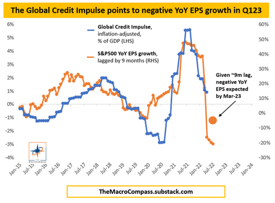 在過去3個月中,微軟的EPS已經(jīng)被修改了36次。所有的修改都是向下的。我預計分析師會在未來幾個季度基于更低的EPS數(shù)字或倍數(shù)不斷修正他們的價格目標。這不僅僅是微軟的問題,也是整個股票市場的問題。在任何情況下,宏觀經(jīng)濟模型[由Alf提供,來自The Macro Compass,2022年11月24日]表明這一過程的不可避免性。