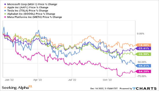 我認為微軟(NASDAQ:MSFT)是市場中最穩(wěn)定的公司之一,但是,即使在年初至今下跌23%之后,微軟的股價依然昂貴。