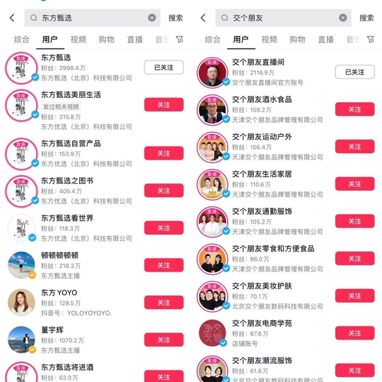 目前“交個朋友”在抖音平臺已推出運動戶外、通勤服飾、生活居家、酒水食品、美妝護膚、兒童服飾等十余個垂類賬號,而東方甄選也擁有東方甄選美麗生活、東方甄選之圖書、東方甄選看世界等多個垂類賬號。