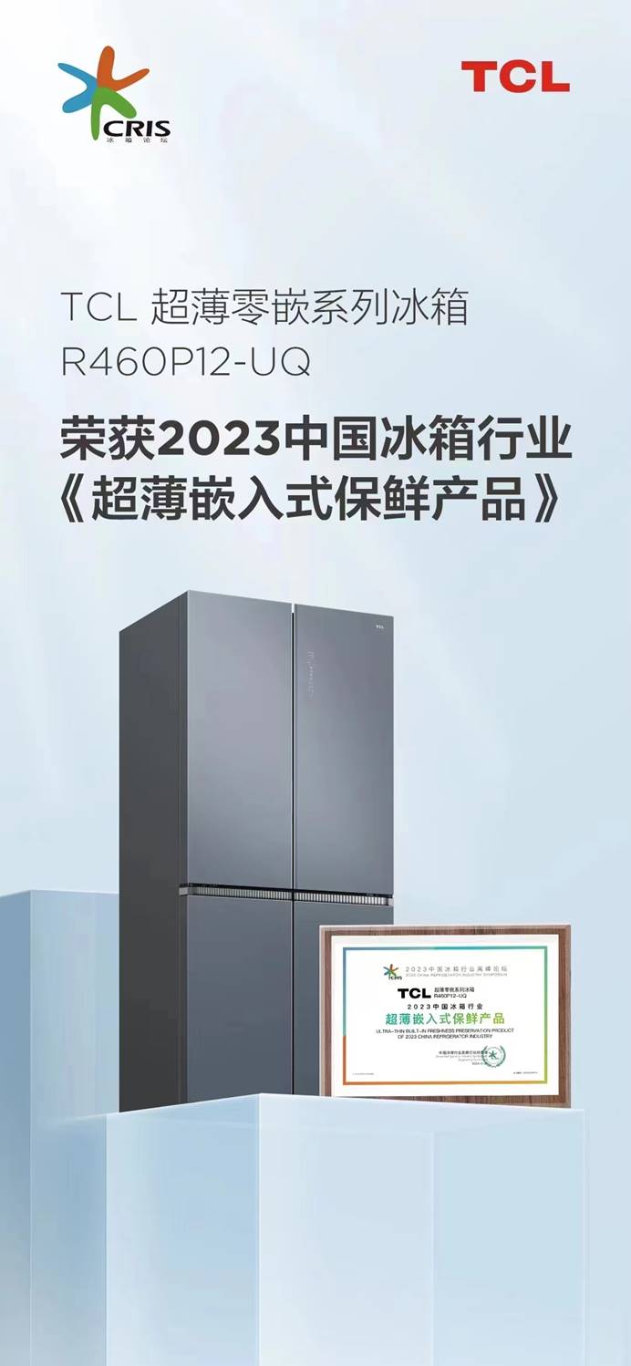 站在家電、家居融合的最前沿,TCL冰箱在嵌入式冰箱領域憑借出色的超薄箱體、零縫隙嵌入、-36°C深冷速凍、超大變溫空間等內外兼修的高標準,讓TCL超薄零嵌系列冰箱R460P12-UQ(簡稱P12)和R455T9-UQ(簡稱T9)脫穎而出,分別榮獲2023年中國冰箱行業“超薄嵌入式保鮮產品獎”和“杰出渠道表現產品獎”,成為嵌入式冰箱新品類上的明珠。