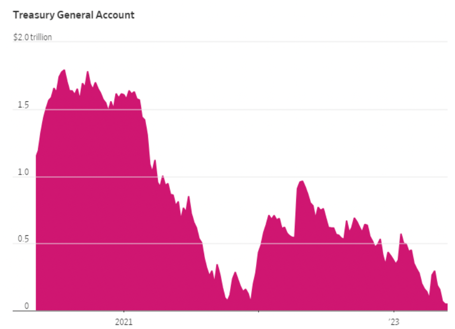 美國財政部在債務上限協議達成后,今年夏天通過發行大量債券來建立其一般賬戶;