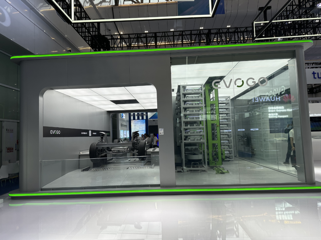 記者來到寧德時代的展區(qū),寧德時代展示了其EVOGO換電站,并現(xiàn)場展示了換電服務(wù)流程,設(shè)備靈活抓緊隔壁的巧克力換電塊,不到一分鐘便完成整個換取流程。