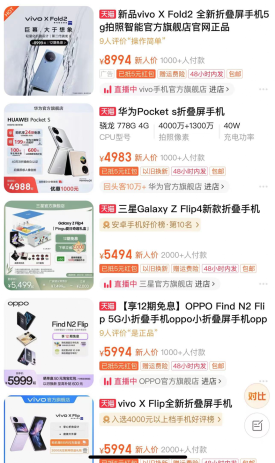 侯林表示,小折疊屏手機(jī)四五千元的價(jià)格甚至與各手機(jī)品牌的直屏旗艦機(jī)型相差不大,可能會刺激部分消費(fèi)者選擇購買折疊屏手機(jī)。尤其是豎向小折疊,之前的價(jià)格就相對親民,降價(jià)之后更可能吸引購買。