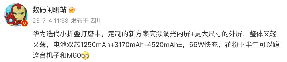 與此同時,華為的迭代小折疊手機也正在打磨之中,其將在今年下半年上市發布。