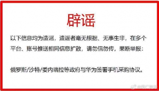 與俄羅斯、委內瑞拉、沙特等國簽署手機采購協議?華為深夜辟謠:勿信勿傳,果斷舉報