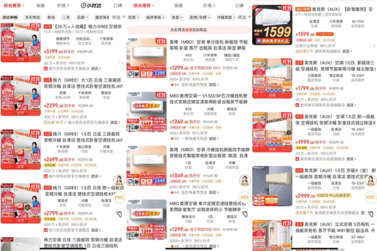 圖為:京東、淘寶等電商平臺空調銷量截圖