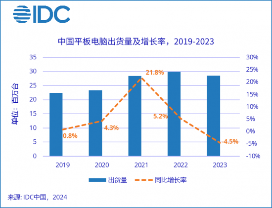 【家電資訊-家電新聞 - 行業(yè)新聞,作者:編輯】主站蜘蛛池模板: 威海市| 青田县| 黄山市| 定边县| 兴和县| 剑阁县| 伊宁县| 惠安县| 金阳县| 兴城市| 福海县| 长泰县| 阳谷县| 福泉市| 石嘴山市| 黔江区| 册亨县| 美姑县| 桃源县| 渭源县| 定陶县| 达拉特旗| 湘乡市| 翼城县| 潜江市| 沁水县| 宾阳县| 繁峙县| 扬州市| 巧家县| 江永县| 清新县| 武乡县| 桦甸市| 秀山| 建瓯市| 拜城县| 道孚县| 平湖市| 五指山市| 葵青区|近日,國際數(shù)據(jù)公司(IDC)發(fā)布了 2023 年第四季度中國平板電腦季度跟蹤報(bào)告,數(shù)據(jù)顯示,2023 年第四季度中國平板電腦市場出貨量約 817 萬臺(tái),同比下降約 5.7%,其中消費(fèi)市場同比下降 7.3%,商用市場同比增長 13.8%。