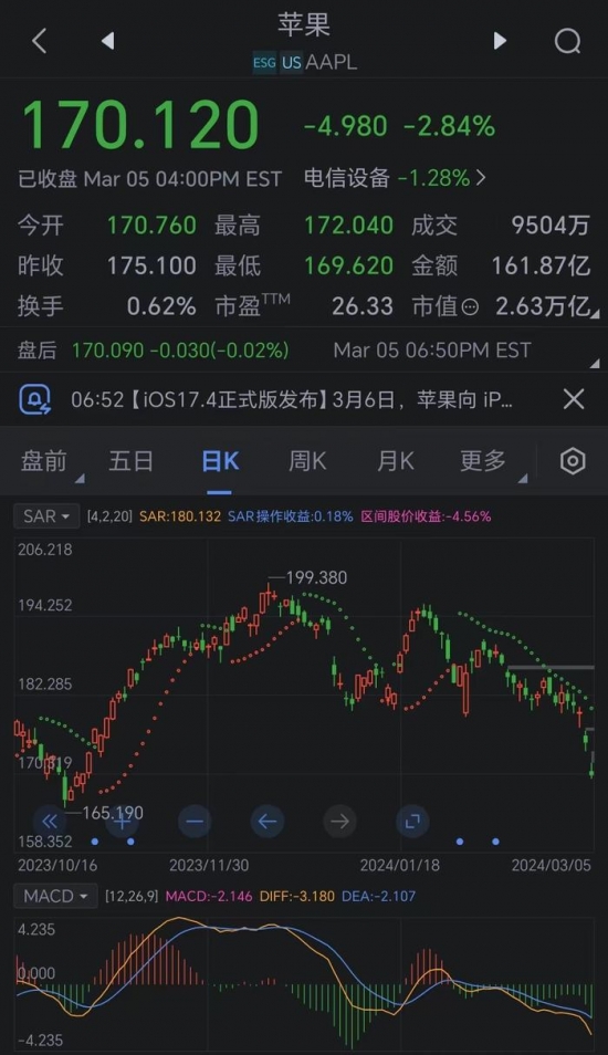 【家電資訊-家電新聞 - 行業新聞,作者:編輯】主站蜘蛛池模板: 泽库县| 鄄城县| 阿尔山市| 江门市| 图片| 舞钢市| 乌兰县| 曲阜市| 西吉县| 凤庆县| 澄江县| 南投市| 综艺| 福泉市| 民和| 邢台县| 鄄城县| 武威市| 甘泉县| 都昌县| 冕宁县| 永吉县| 花垣县| 阳山县| 简阳市| 屯门区| 金门县| 彭山县| 油尖旺区| 含山县| 桦南县| 莱芜市| 洪泽县| 临泽县| 霞浦县| 轮台县| 南汇区| 阿荣旗| 肇州县| 乌拉特中旗| 楚雄市|隔夜,蘋果、特斯拉繼續大幅回調,令美股大盤承壓 。蘋果收盤下跌2.84%,連續5個交易日下跌。消息面上,市場調研機構Counterpoint Research數據顯示,今年前六周,蘋果公司在中國的iPhone銷量同比下降24%,在中國智能手機供應商中排名第四。加上此前一天因歐盟處以20億美元反壟斷罰款的跌幅,其市值兩日累計蒸發1470億美元(約合10602億元人民幣)。