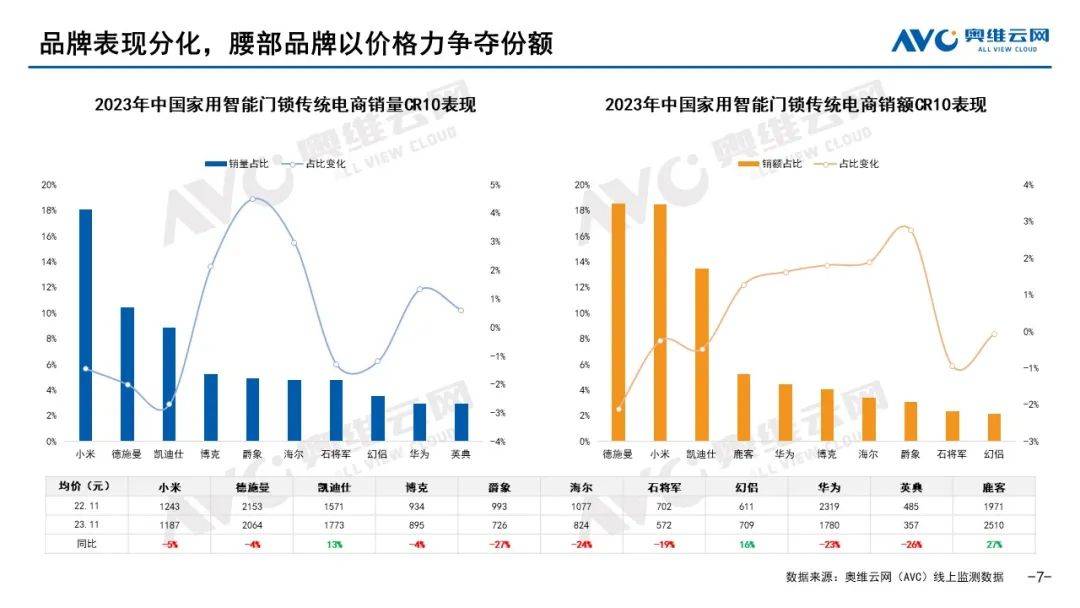 奧維云網(wǎng)(AVC)線上監(jiān)測數(shù)據(jù)顯示,2024年一季度,中國家用智能門鎖行業(yè)線上整體市場均價為992元,進入千元以下。
