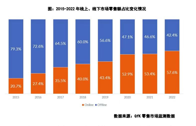 - 從大連鎖沒落到電商消沉,家電渠道的變化波譎云詭。 雖然互聯網紅利消失的論斷不絕于耳,但近幾年,家電行業線上銷售額占比仍在逐年增加。GFK數據顯示,2022年線上市場零售額占已經達到了57