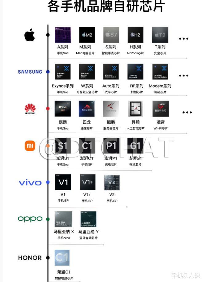 - 蘋果三星華為小米vivoOPPP幾大手機(jī)前前后后都有花費(fèi)巨大自研芯片,最出名自然是蘋果的A系列三星的Exynos系列華為的麒麟系列,這三大處理器都搭載到自家的旗艦手機(jī)系列,一度和高通和聯(lián)發(fā)科等