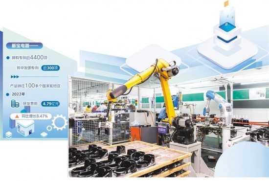 - 廣東新寶電器股份有限公司自動化生產(chǎn)車間。 經(jīng)濟(jì)日報(bào)記者 張建軍攝 在位于廣東順德的廣東新寶電器股份有限公司(以下簡稱“新寶電器”)展廳內(nèi),廚房家用電器、家居護(hù)理電器