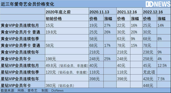 - 愛奇藝會員又漲價了,花3塊錢把自己送上了熱搜。 三次漲價后,相比2020年之前,會員連續(xù)包月最低價上漲了2/3。實際上,愛奇藝并不是唯一因會員漲價站在風(fēng)口浪尖的長視頻平臺,騰訊視頻、優(yōu)酷