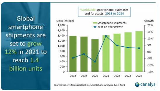 - 2020年,由于新冠疫情造成的市場狀況,智能手機(jī)增長大幅下滑,出貨量下降7%。Canalys的分析師預(yù)測,2021年將看到市場復(fù)蘇,他們還預(yù)測,在采用5G方面將接近一個(gè)轉(zhuǎn)折點(diǎn)。 現(xiàn)在各國已經(jīng)開始