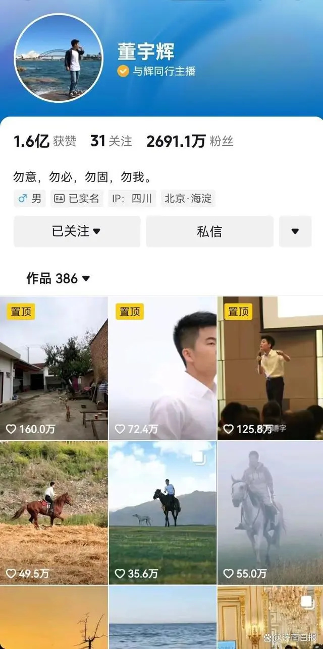 - 據8月27日消息,與輝同行已獨立運營滿1個月。第三方數據平臺顯示,在獨立運營的一個月里,與輝同行賬號粉絲增量破130萬,目前已超過2300萬。 董宇輝抖音個人賬號粉絲目前已接近2700萬。