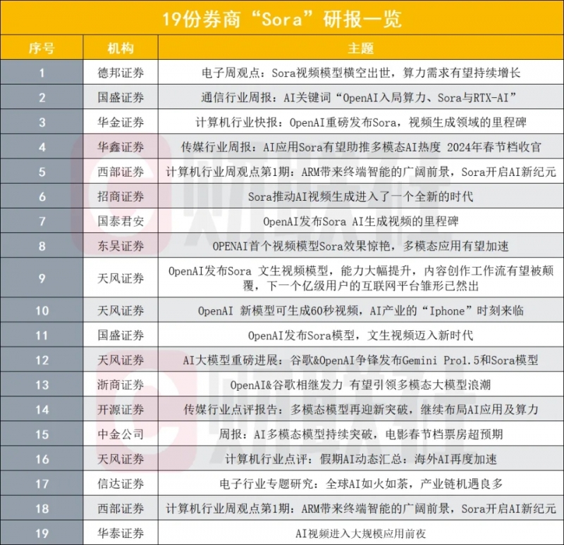 - 短短三天,至少14家券商發布19份Sora研報,算力有望成投資新熱門