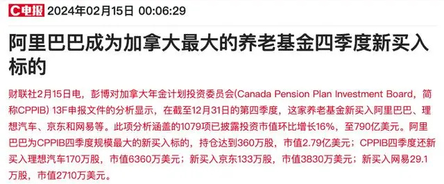- 近日,多家美股投資機(jī)構(gòu)披露的13F持倉(cāng)報(bào)告顯示,投資者對(duì)阿里巴巴(09988.HK;BABA:NYSE)的興趣正在升溫。 資料顯示,阿里巴巴成為了加拿大最大養(yǎng)老基金CPPIB去年四季度規(guī)模最大的新買入標(biāo)